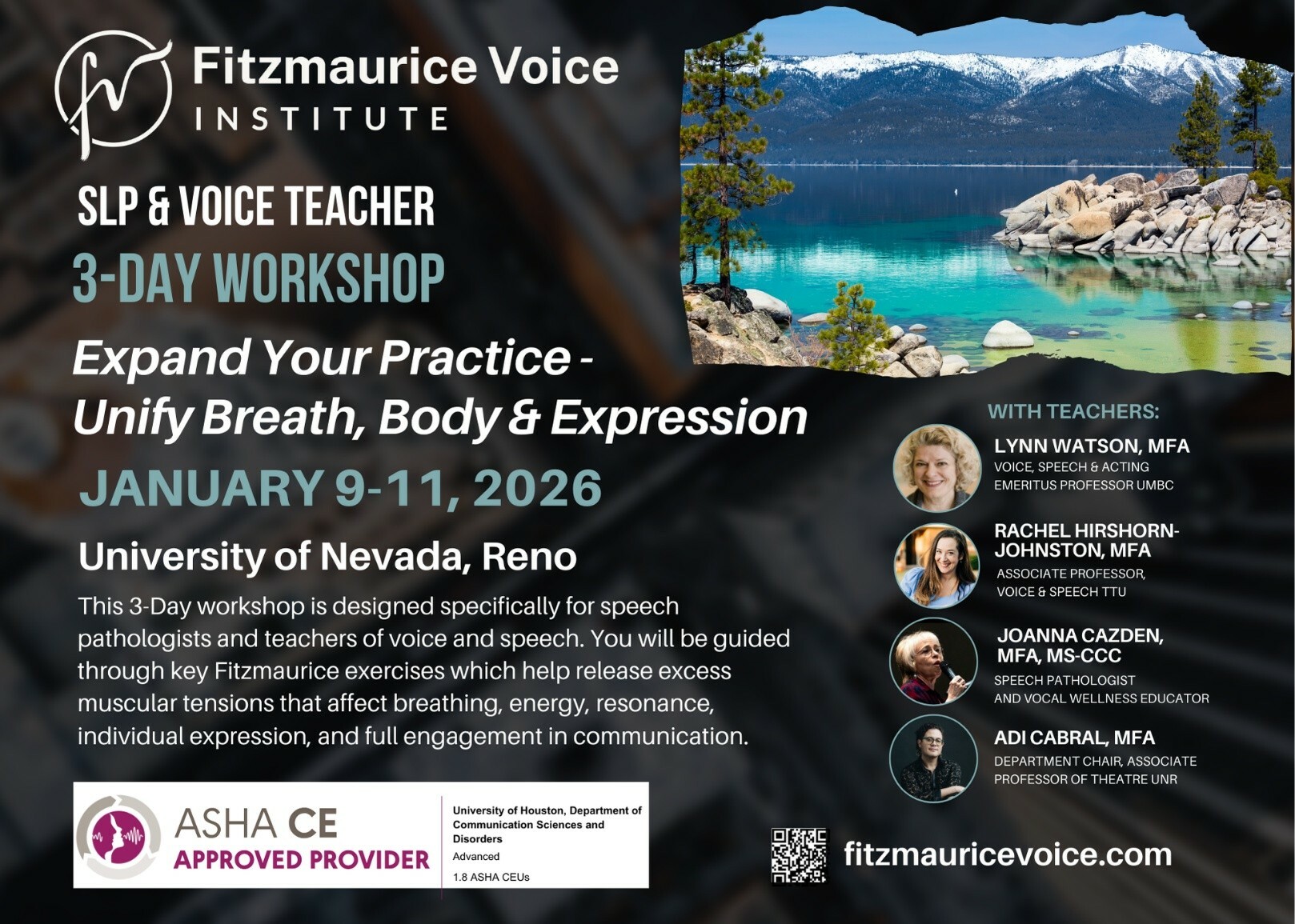 The Fitzmaurice Voice Institute, recognized as a "global leader in voice training for performance," is offering a specialized new 3-day workshop for Speech-Language Pathologists and Voice Teachers.